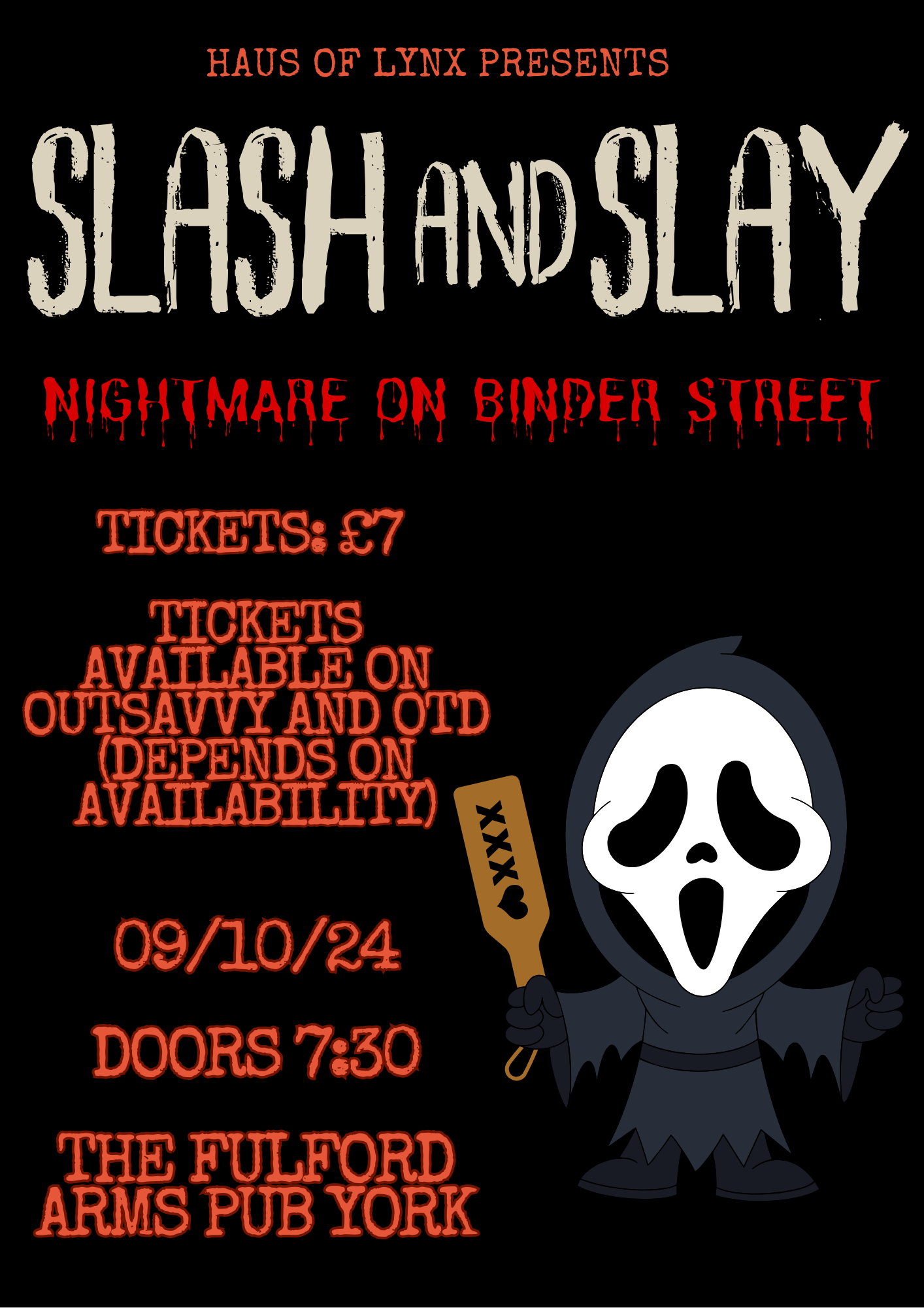 Haus of Lynx are proud to present… Slash and Slay! Nightmare on binder street drag night! 👀👻🫣We are thrilled and oozing with excitement to put on another show for you… can you manage to survive a night of Goulish Debauchery, Campy Horror, Bloodcurdling Games and Frighteningly Spectacular Entertainment? Let’s see if you can! 😈 For this show, we STRONGLY encourage our lovely victims- erm we mean audience- to please dress up! Let out your spooky side and revel in each others oddities! There will be a competition!