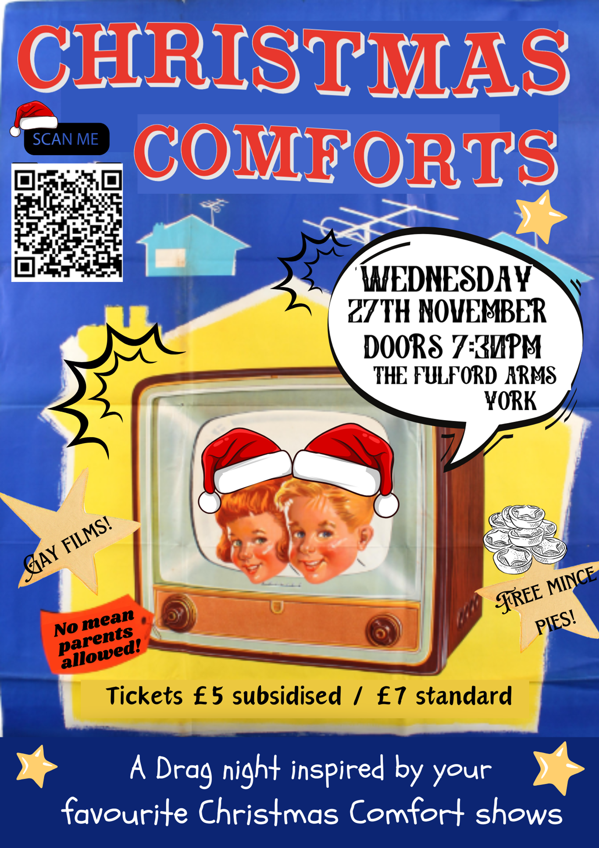 And this one will have a special twist... 😱 A night of drag featuring some of your favourite performers from York and Leeds, followed by not only one, BUT TWO, independent queer Christmas films! Free mince pies (and popcorn for vegans), wear your comfiest clothing and bring your blankets... we're here to bring you queer Christmas joy ✨✨