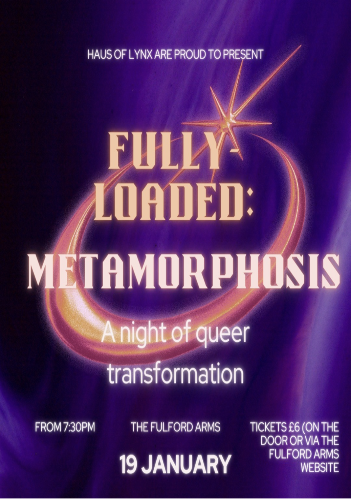 Crawl like the strange moth creature you are to The Fulford Arms on the 19th January from 7:30pm for a night of queer transformation